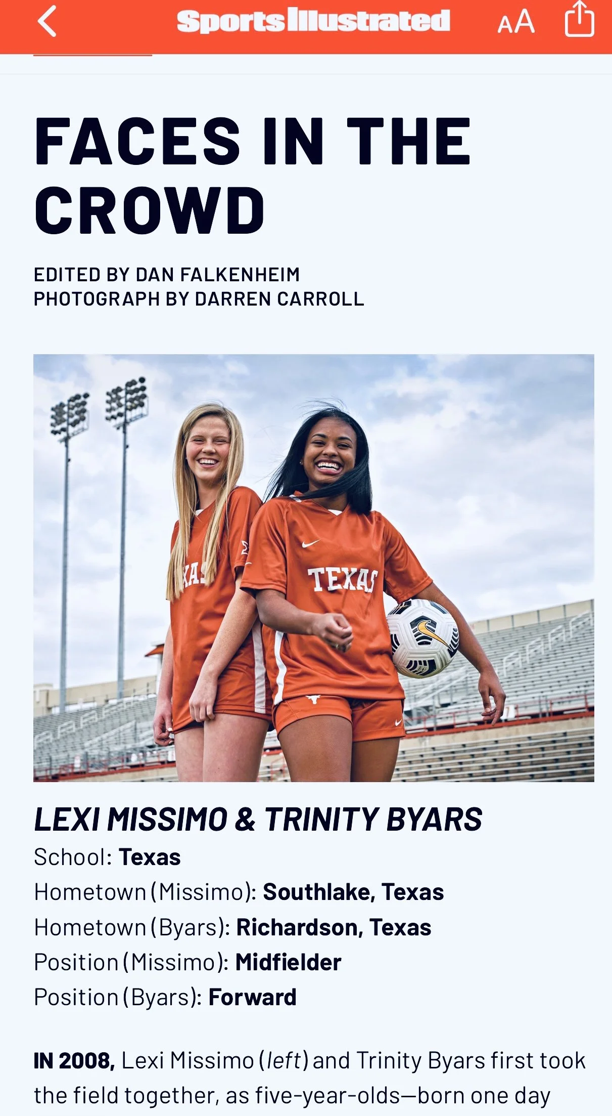 Has an older sister, Gabriella, who played soccer at Texas in 2019